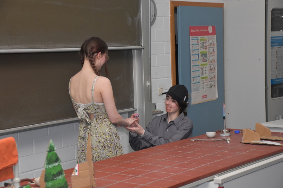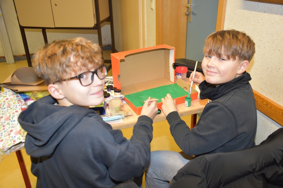 In zahlreichen Unterrichtsräumen wurden die Ergebnisse der vormittäglichen Projektarbeit vorgestellt. So konnten unter anderem ganze Szenenfolgen aus europäischen Märchen bewundert werden, die die Schülerinnen und Schüler der fünften Klassen mit ganz unterschiedlichen Materialien gestaltet hatten.