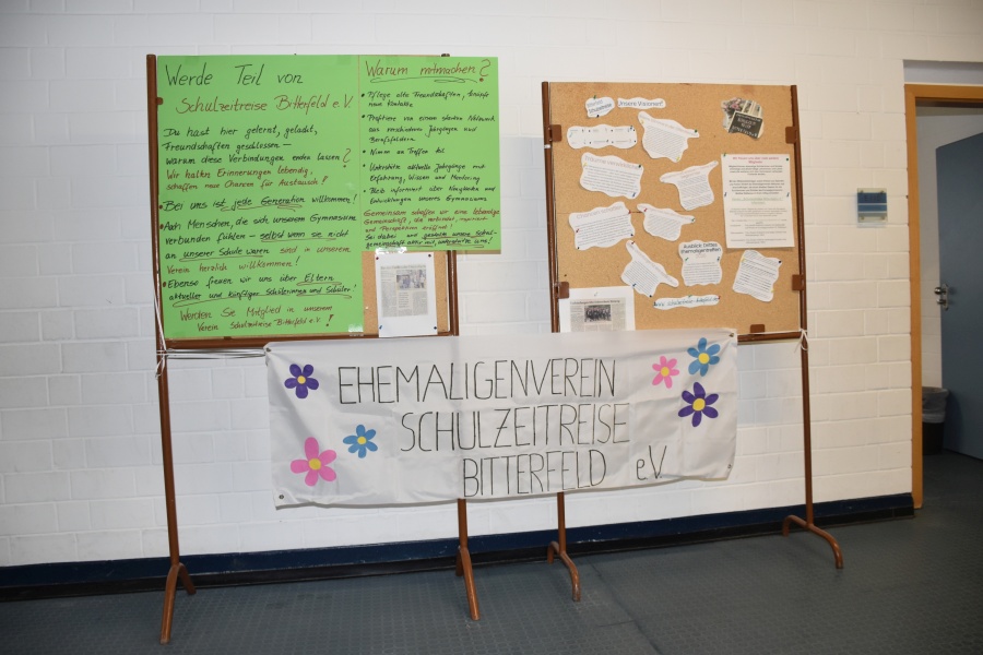 Interessiert zeigten sich die Besucher am Verein "Schulzeitreise", die unter anderem Treffen mit ehemaligen Schülerinnen und Schülern organisieren, bei denen sie sich auch mit ihren ehemaligen Lehrerinnen und Lehrern über frühere Zeiten austauschen können.