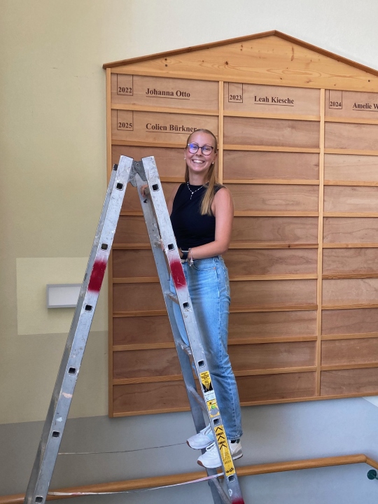 Pünktlich zum Beginn des neuen Schuljahres verewigte sich unsere jahrgangsbeste Abiturientin auf der Tabula Optimorum- der ewigen Bestentafel unserer Schule. Colien Bürkner bleibt mit ihrem hervorragenden Abiturdurchschnitt von 1,1 der Heimat treu und nimmt ein Studium der Humanmedizin in Halle auf. Wir hoffen, dass sich viele Lernende der Europaschule die seit 1991 auf der Tafel geführten Besten zum Vorbild nehmen.