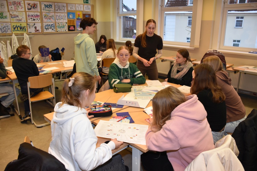 Im Jahrgang 6 stand Europa in seiner sprachlichen, historischen und geografischen Vielfalt im Mittelpunkt. Die Schülerinnen und Schüler erhielten Einblicke in die zweiten Fremdsprachen Französisch, Latein und Russisch. Ergänzend stellten sich die Junior-Botschaftervor. Ein Geographie-Escape-Room sowie ein Projekt zur europäischen Antike rundeten das Angebot ab.
