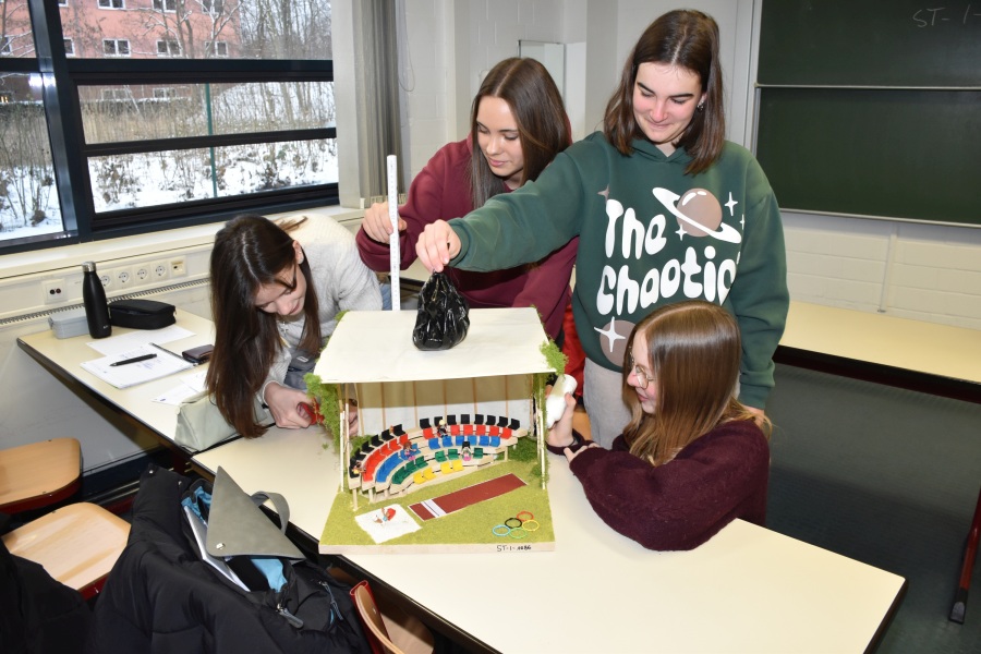 Im Jahrgang 8 stand die Verbindung von Europa und Technik im Vordergrund. In einem fächerübergreifenden Physikprojekt beschäftigen sich die Schülerinnen und Schüler über mehrere Stunden hinweg mit Dächern europäischer Fußballstadien. Dieses Projekt ist zugleich an den Wettbewerb der Junior-Ingenieur-Kammer angebunden.